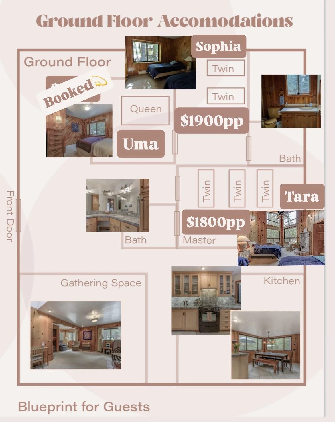 PAY IN FULL Downstairs room “Sophia” with 2 twin beds $1900